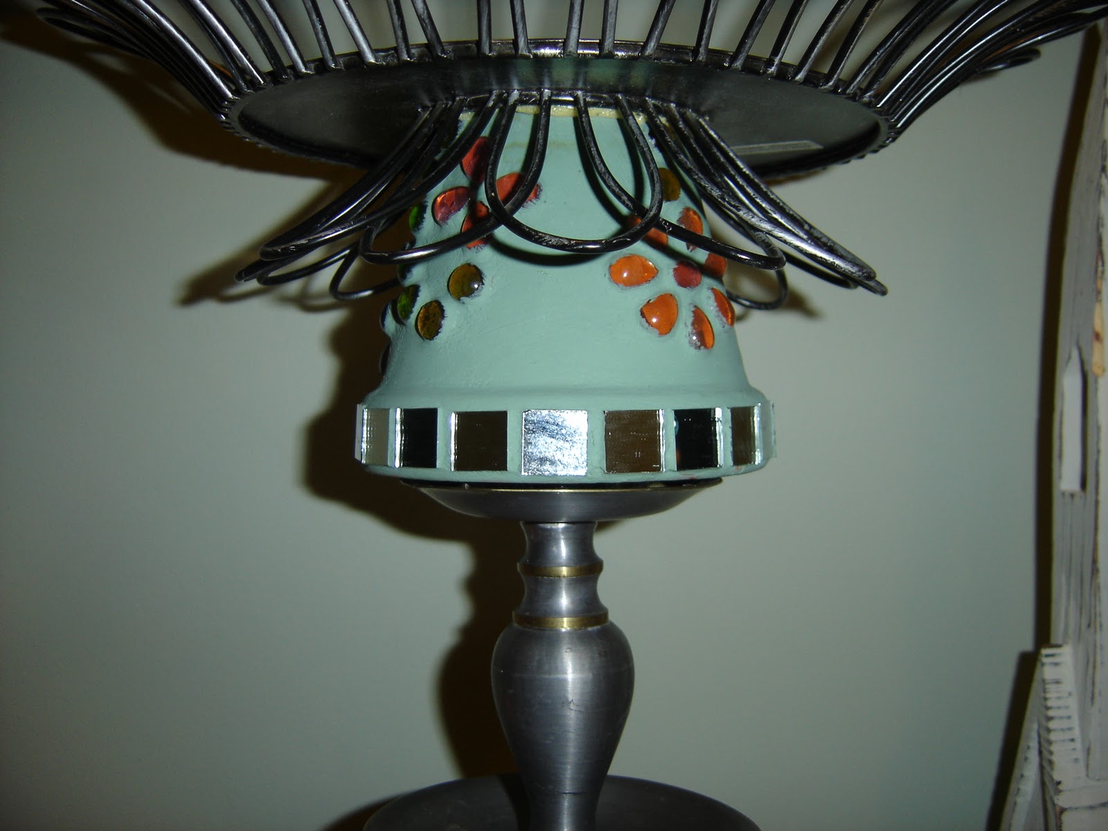 A 50 cent plate & then when I thought it lacked something, I added a thrift store flower pot that someone had embellished 30 cents : )